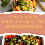 This Chicken Enchilada Meal Prep Bowl recipe combines tender chicken breast, flavorful enchilada sauce, jasmine rice, and a fresh black bean and corn salsa for a delicious, easy-to-make meal prep option that’s perfect for busy weeknights or lunches. Baked in individual bowls, the dish is wholesome, cheesy, and packed with vibrant flavors.