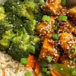 This Chicken Teriyaki Bowl combines tender chicken breast cooked in a homemade teriyaki sauce with stir-fried vegetables and a bed of fluffy brown rice, making it a wholesome and flavorful meal perfect for quick weeknight dinners. Topped with sesame seeds and fresh green onions, it’s a nutritious alternative to takeout that’s easy to prepare and delicious.